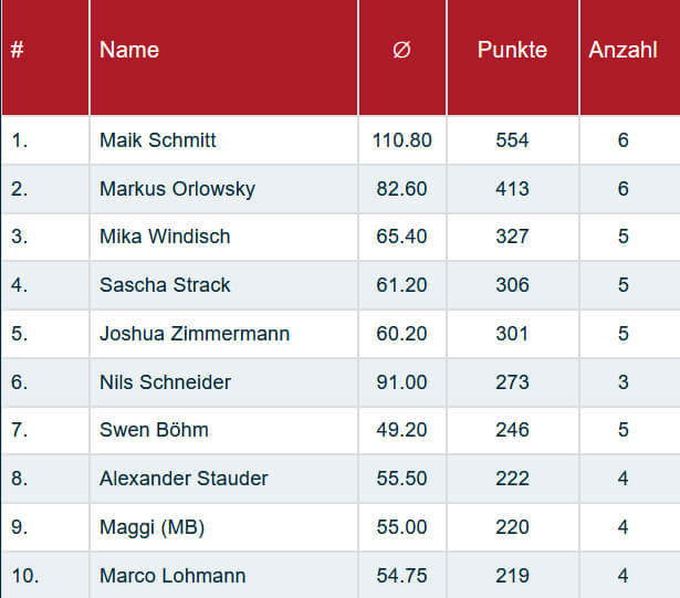 Also bleibt da nichts anders zu sagen als, HERZLICHEN GLÜCKWUNSCH Maik Schmitt, deutlicher kann man denke keine Rangliste gewinnen.